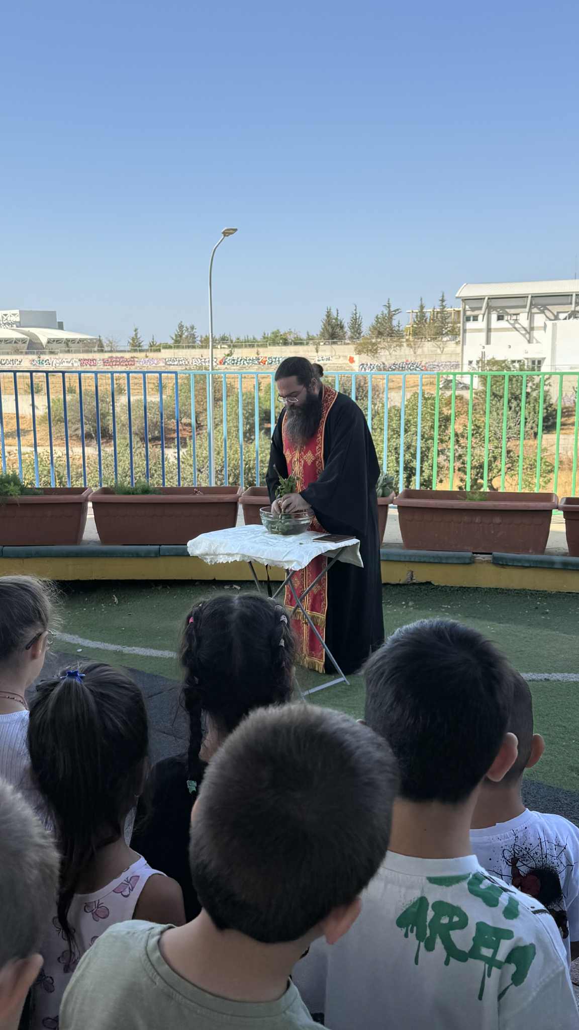 Έναρξη της σχολικής χρονιάς 2025- 2026 με αγιασμό και ευλογίες από τον πάτερ Φειδία Ελπιδοφόρου. 24/9/2025