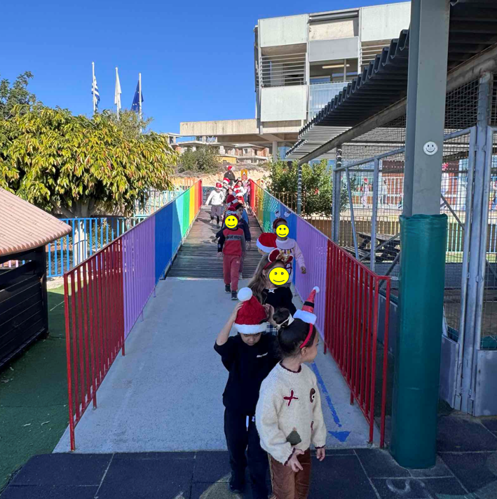 Αφού κάναμε παρέλαση με χριστουγεννιάτικα αξεσουάρ, υποδεχτήκαμε στο σχολείο μας τον Άγιο Βασίλη.