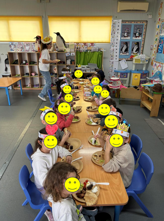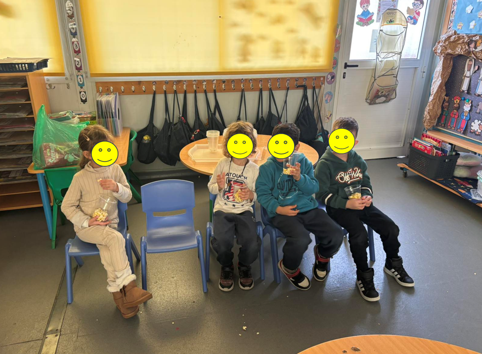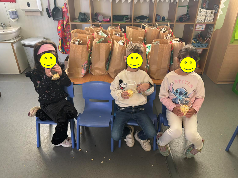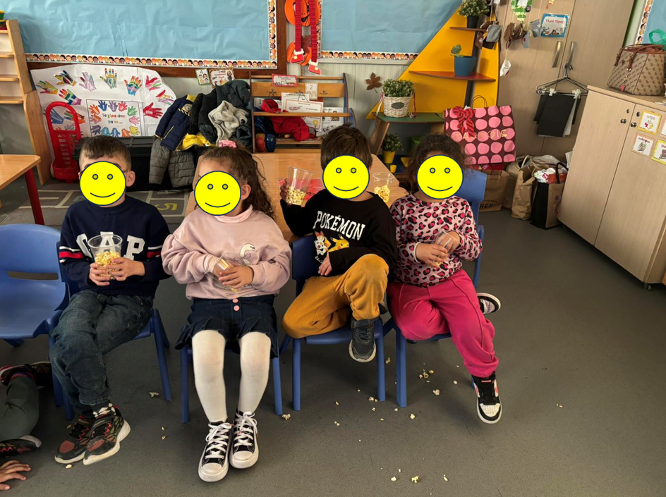 Φάγαμε όλοι μαζί στην αυλή και στη συνέχεια παρακολουθήσαμε χριστουγεννιάτικη ταινία, τρώγοντας pop corn.
