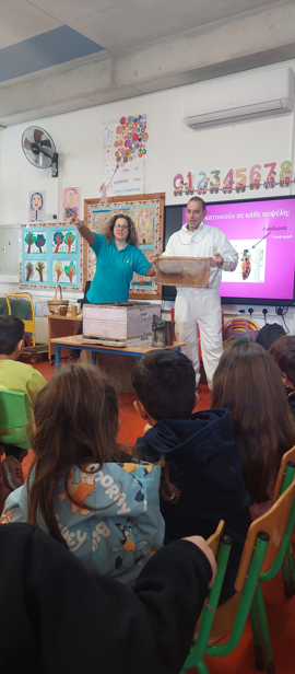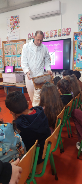 Τα παιδιά του σχολείου μας συμμετείχαν σε ένα πολύ ενδιαφέρον εργαστήρι για τις μέλισσες και το μέλι. Έμαθαν πολλές πληροφορίες και έφτιαξαν κυψέλες και κεριά.